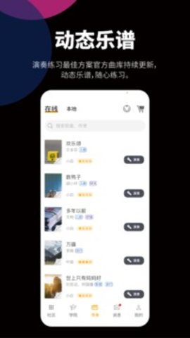 自乐班APP是一款非常实用便捷的手机乐器演奏练习APP,软件提供了各种不同的乐器和不同的乐谱,可以随时随地在线练习演奏,这实际上是一个移动合成器,也可以直接点击播放音乐,新版本在线更新,喜欢的朋友快来体验吧。