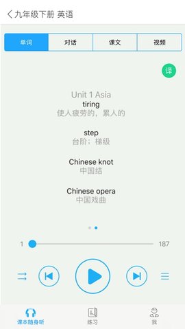 1、在这里,我们为学生提供单词学习、课文背诵、在线练习、人机对话、口语评价等服务。