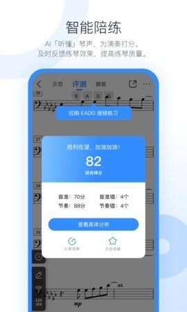 -乐谱跟踪:在钢琴练习期间,app将实时跟踪演奏者的节奏,移动光标并自动滚动乐谱。