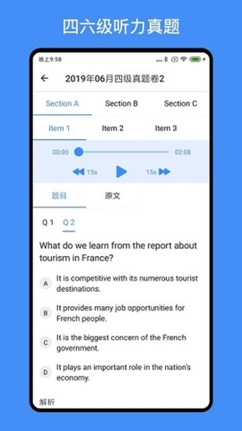 3.系统具有多个功能部分,包括强大的练习和听力,可以来满足不同学习用户的需求。