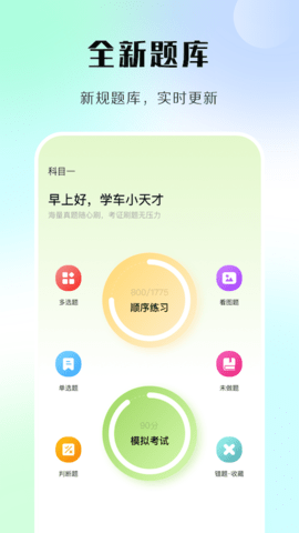 3、最新题库:每周同步当地交管局的题库,确保题库是最新的。