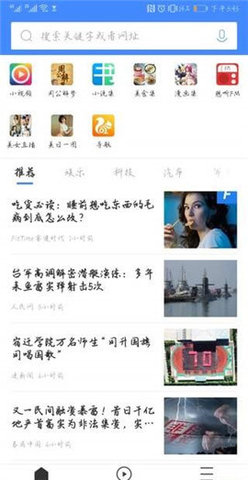 1、 内容集成的应用程序。丰厚的内容,包括搜索、新闻、视频、直播、FM等。