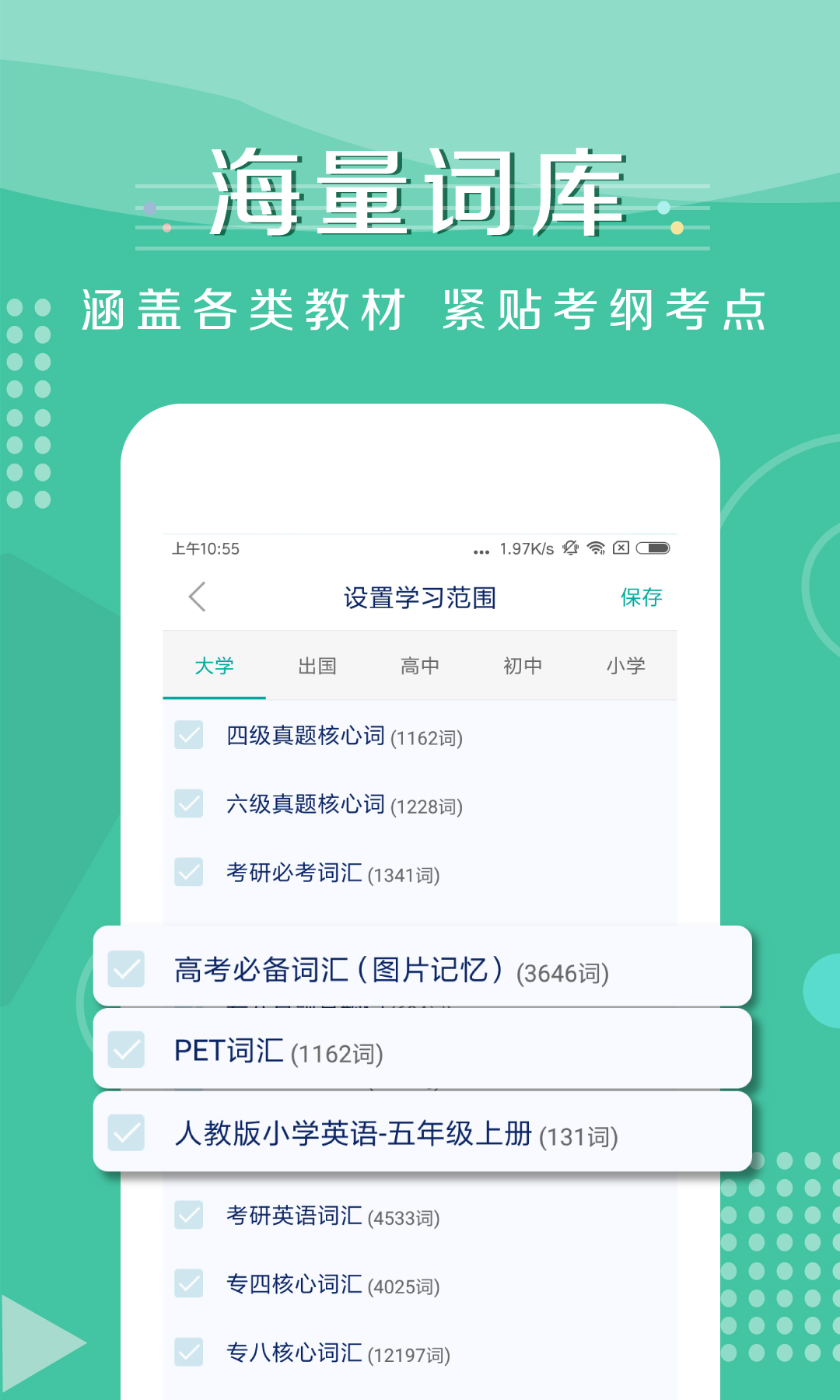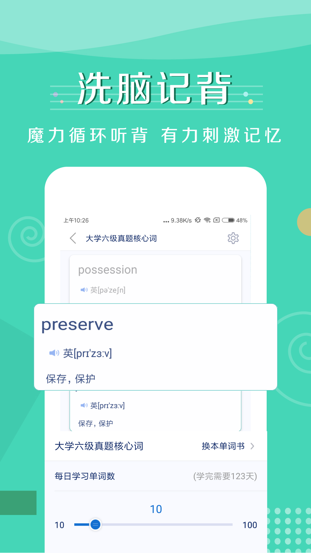 不管在走路,在坐车,哪怕您是躺在草地上仰望星空,您都能单手操作, 轻松便捷背英语单词,应对各种学习难题,轻松考过四六级。