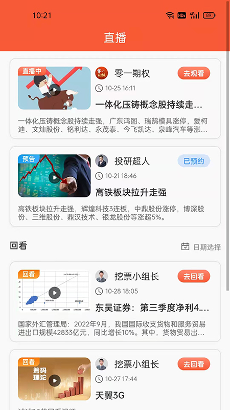 2、可分为实时直播和定时直播,支持直播回放。用户能够观看经济名人发布的在线视频课程直播;