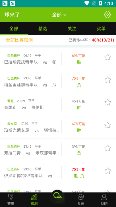 2、成功的预测和智能大数据预测页面可以准确预测各种比赛数据,分析球队实力。