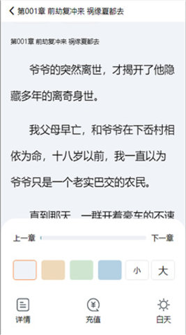 3、支持在线阅读、缓存阅读、字体切换、后台切换等功能。