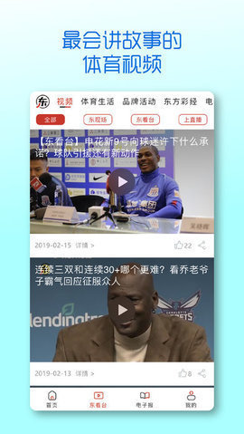 东方体育是一款可以为用户提供全方位体育报道的移动软件,拥有精彩内容将实时呈现,让用户来及时了解体育产业动态。收集最新的体育信息、比赛比分和采访等信息,并通过软件观看cba、英超、西甲、中超等热门赛事的直播,可以来随时享受精彩比赛。