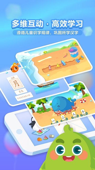 兔小贝识字有不同类型的儿童学习卡片。你就可以随时为孩子讲解知识,还有趣味互动游戏,钓鱼、种花、汉堡店、冲浪等汉字儿童学习游戏。从简单到困难,每天学习6个汉字,持续10分钟,让孩子们可以了解更多的汉字。再也不用担心孩子们对学习的热爱。孩子们可以在短时间内掌握这些知识。