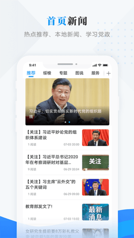 3、居家新闻:热点引荐、中央新闻、党政学习。