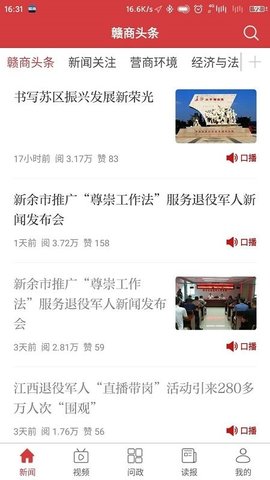 赣商头条app是江西的一款新闻资讯软件,每天向用户推送当地商业信息,实时理解当地商业动态信息。不只有大量的新闻信息可供阅读,还有视频类型和直播类型的不同选择,欢迎前来下载!