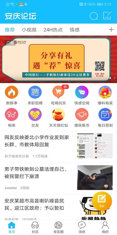 1、安庆论坛的主页整合本地丰富的新闻资讯,快速找到共同兴趣爱好的圈子。