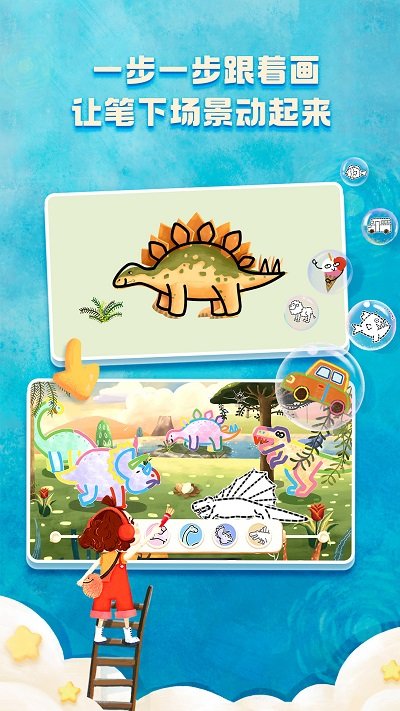 3、有不同主题的美术创作活动,随时在美丽漂亮的景色上留下创意画作。