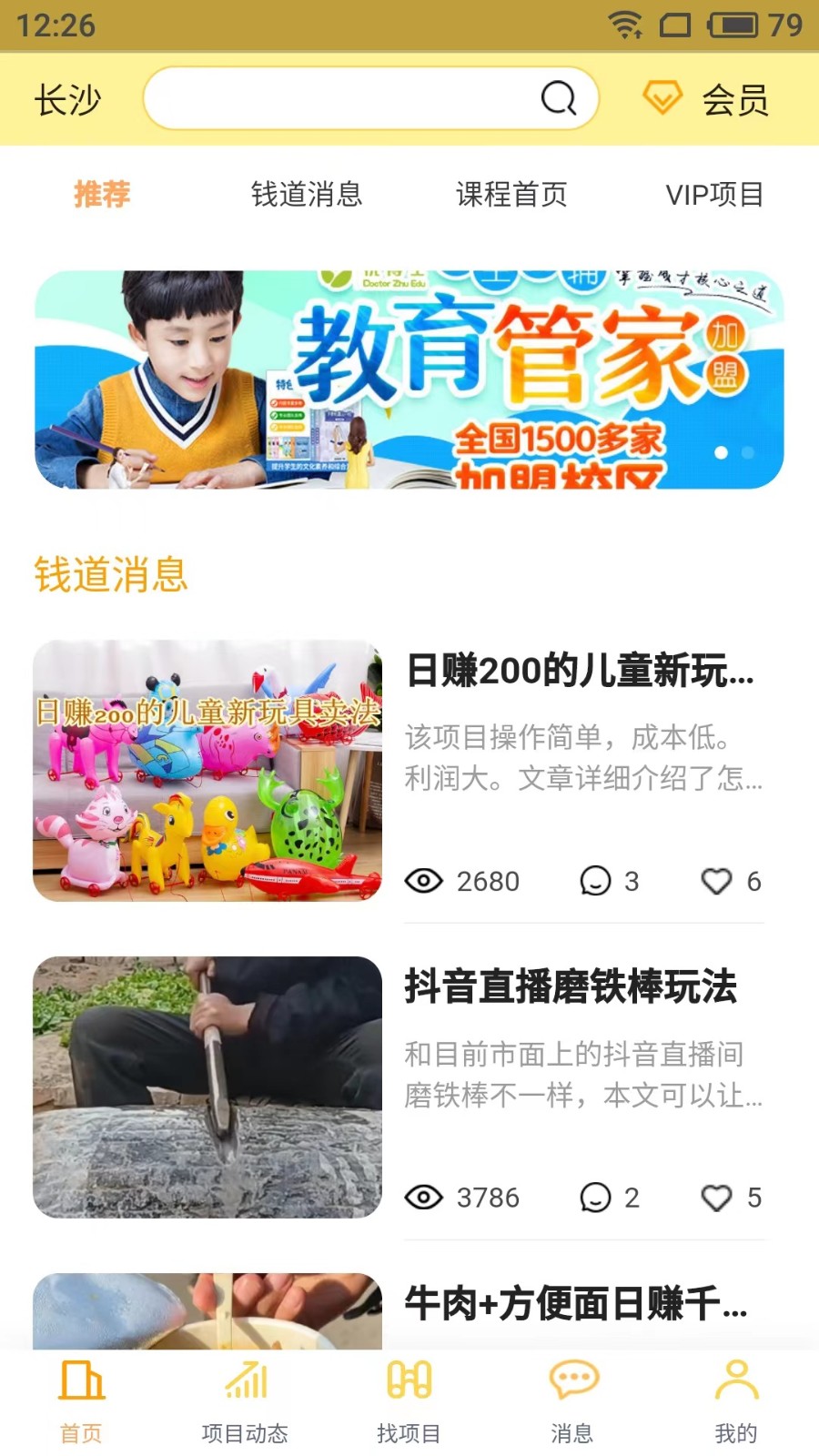 1、注册账号后,能够在手机首页查看各类盈利信息,寻觅招商项目;