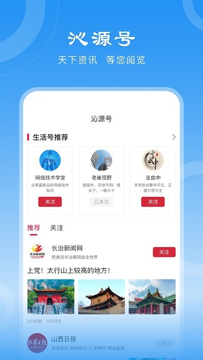 沁源融媒体中心是一款面向本地的资讯软件。这里每日不间断地带来沁源本地的突发信息,去了解同城的特色文化。直接掌握第一手内容,阅读服务是便利的,随时提高用户的互动体验。