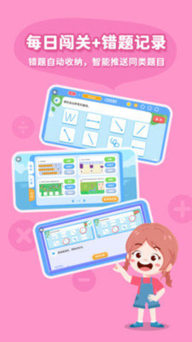 3、记录日常及格和错题:每天5个思维练习,培养孩子坚持的好习惯。同时,每天会自动收集错题,并智能推送同题,方便家长每次都了解孩子的练习情况,帮助孩子补漏。