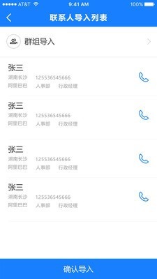 2.一键将信息导入到手机通讯录,自动识别信息,记录姓名和手机号码。