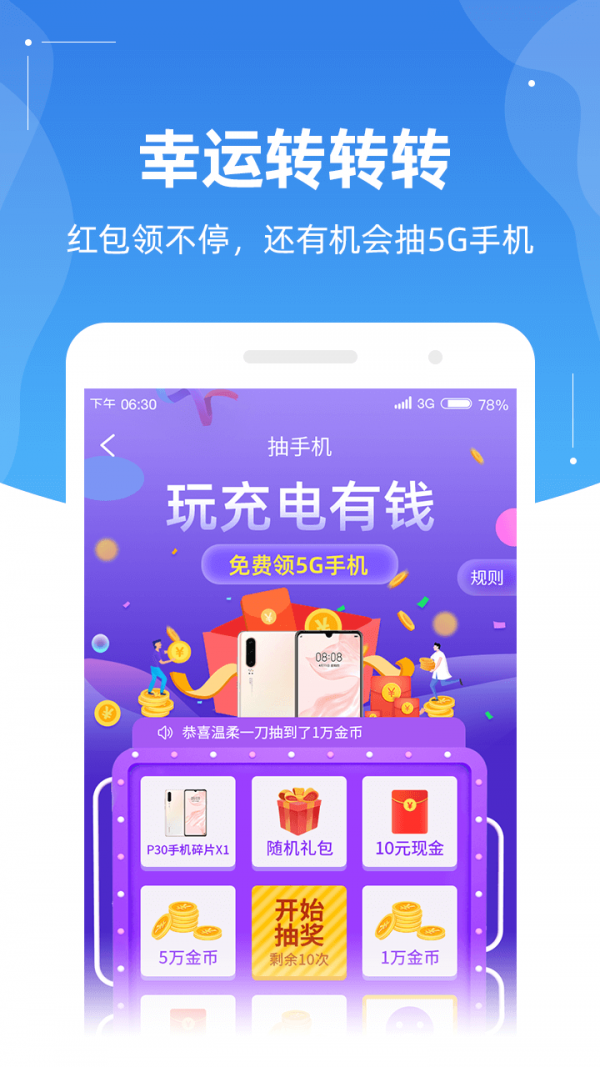 1.充电来赚钱软件下载之后可以随时掌握充电状态,了解电量情况,充电获取金币。
