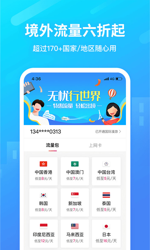 中国移动无忧行境外流量app让你方便出国也能方便拨打电话,平台覆盖多个国家,让你无论在何地都能畅享移动服务,无忧行app官网下载各项业务办理方便,通讯实时接通,无需办理外国电话卡,一张卡号就能享受全球服务。小编另外推荐一款相同软件:流量玩。