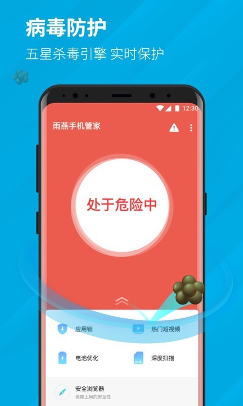 雨燕手机管家app软件是一款非常专业好用的保护手机安全的软件应用,功能强大,十分好用,软件安全可靠,用户可以放心使用,雨燕手机管家下载之后不光可以一键扫描查杀病毒还可以直接进行系统垃圾清理,告别手机卡顿发热情况,优化手机内存,延长手机使用期限,让您的手机内容更轻便,有需要的用户欢迎来yn下载站下载使用,更多手机病毒查杀软件等你体验。