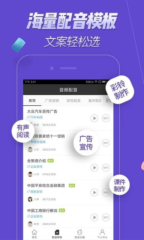 1.配音软件免费下载后文字可以转换成语音,拥有海量配音模板。