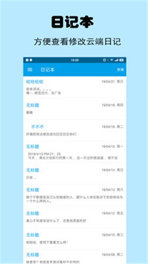 有了这款软件可以随时随地记录你的心事,不用怕被泄露,只有你自己才能使用,保护用户的隐私安全,随时随地记录你想记录的生活点滴,喜欢的朋友们快来下载使用吧。