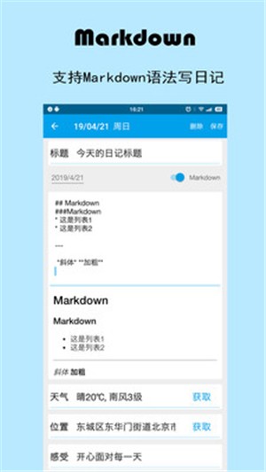 1.记录内容的时候可以给日记添加对应的标题内容。