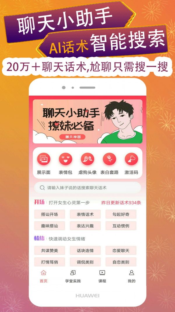 超30万+恋爱话术大全,聊天话术,给你源源不断的聊天灵感,聊天话题,不可多得的聊天助手,各种聊天套路,助你成为情感高手。