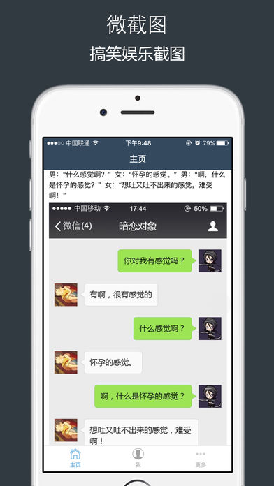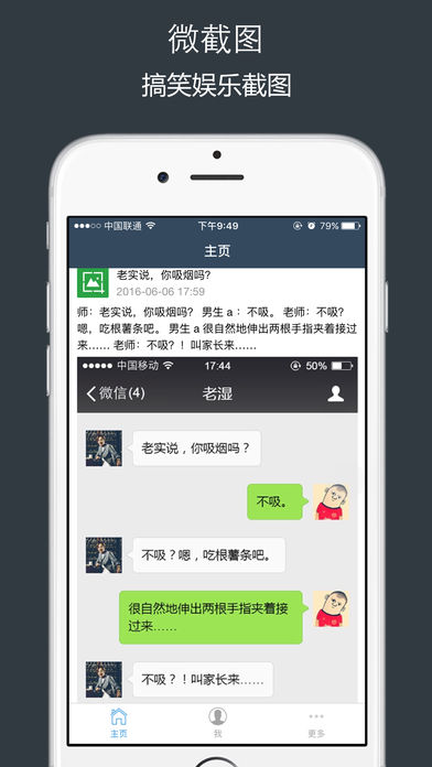 微截图app,是一款适用于安卓平台的微信对话制作生成软件,支持微信文字聊天、图片、发布事件等内容自动合成聊天记录图片,并且支持用户自定义微信头像、名称等,达到任何你想要修改的结果。附上恶搞软件合集,快乐不止截图。