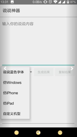 1、你需要发的说说写在APP里面,然后选择你想让说说不一样的地方。