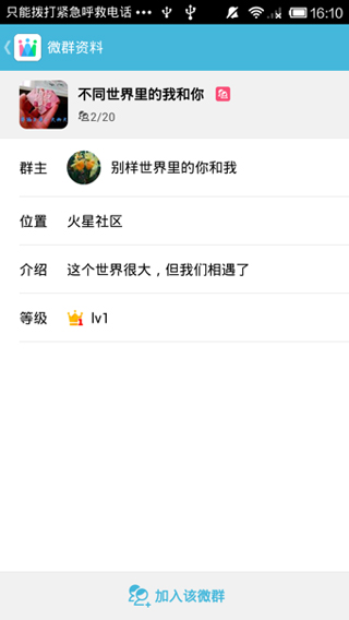 微群组由腾讯出品,是一款以兴趣为核心,基于附近的群组社交应用。用户可以创建群,或加入附近感兴趣的群,如同城驴友、音乐、运动、宠物等等主题交流群组,并能由此找到身边志趣相投的朋友。微群组支持QQ帐号及微信帐号登录。