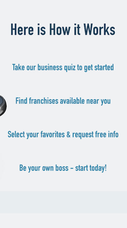 经过快速创业测试,了解您的商业目标,我们独特的应用程序匹配您的兴趣与流行的机会,基于其他企业家的选择,就像你一样。比较业务想法,选择你的最爱,并通过应用程序直接联系业务。