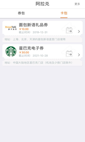 阿拉丁通过终端、移动客户端和电子商城的结合,为用户打造了一个综合性的o2o服务平台,在阿拉订,您可以很容易地将中国数以万计的海外品牌的礼品券与您的兑换券一起使用,如星巴克、来伊份、哈根达斯、GAP、全家、罗森、歌帝梵、DQ、百果园、电影院、加油站、洗车场,兑换购物中心、情景点卡等或兑换话费、公用事业费、游戏积分卡等方便的在线增值服务,还可兑换京东、1号店、亚马逊、携程、驴妈妈等大型主流电子商务平台礼券。