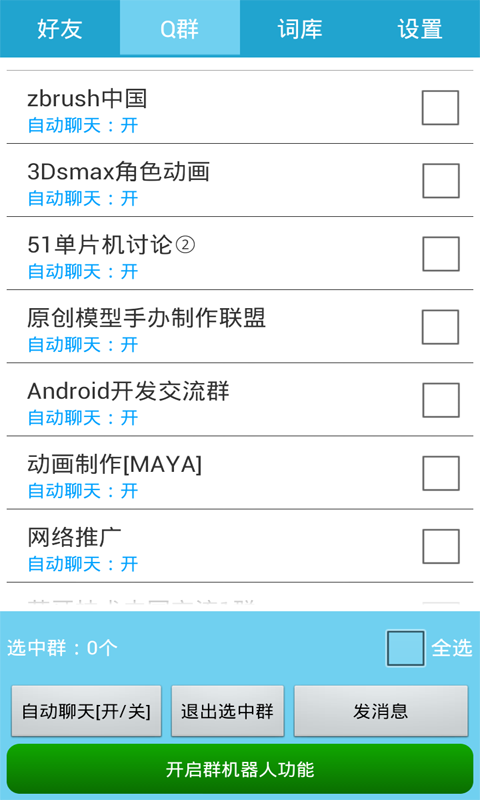 添加群管理,签到,自动加入,自动踢人功能应用自带十万词汇量,让聊天不再单调