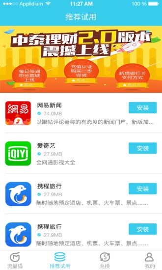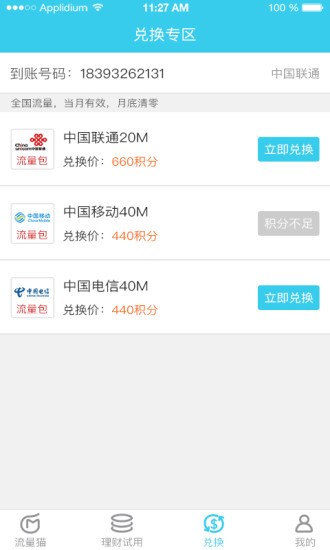 3、注册后成功登陆即送100M的流量,当月使用有效,帮助用户告别月底流量告急。