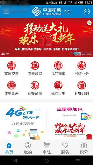 中国移动手机营业厅(安卓手机版)是依托智能终端,中国移动手机营业厅是中国移动【官方】推出的自助服务客户端软件。面向全国移动智能终端用户,提供方便快捷的账单查询、话费充值、流量管理、积分兑换、业务办理、终端购买等功能,随时随地享受移动优惠信息和特色服务。2015年全新升级改版的手机营业厅闪耀登场,随时随地、随心随行的服务体验更流畅、更贴心!