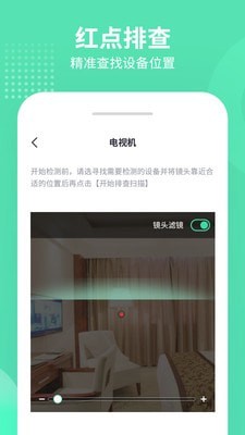 1、针眼查下载后能够保证用户出门住宿或是租房时的人身安全,帮助用户排查所有可疑设备;