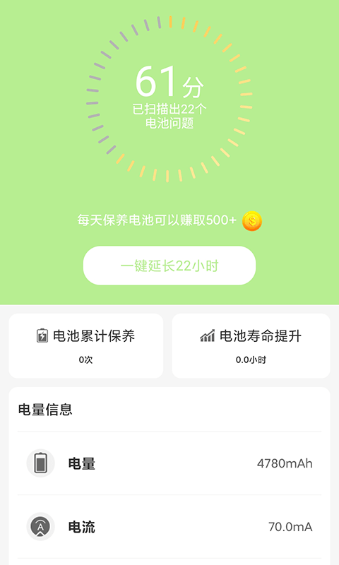 1、 电池维护助手,专业的手机电池管理、优化和修复工具,帮助您时刻关注电池健康;