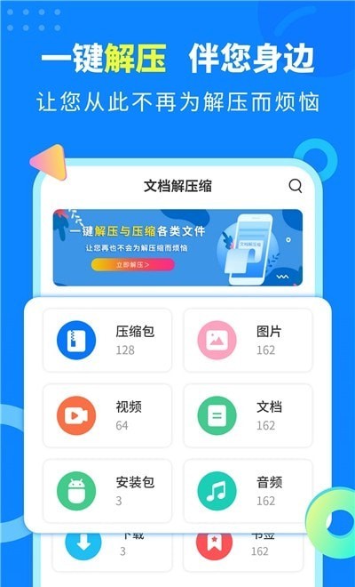 文档解压缩安卓版是一款便捷好用的手机解压软件,用户在接收到压缩包文件的时候可以使用这款软件进行解压,当自己的文件过大无法成功传输的时候,也可以在这里进行压缩后再传送,文档解压缩app下载后对用户手机空间内所有的文件都进行了分类,让用户能够迅速找到压缩包。