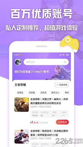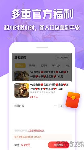 租号玩app是一个游戏交易平台,您可以在这里租用各种类型的游戏帐号,包括顶级稀有设备、早期神级帐号等,帮助你以最低的成本玩游戏,为你带来便捷的组号服务,拥有安全可靠的保障。