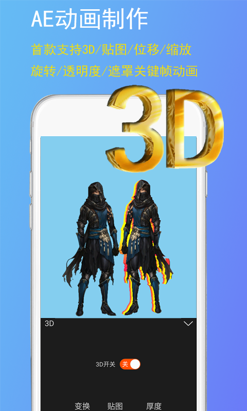 1.有AE基础的童鞋可直接上手操作,可以精确控制时间或手动输入时间,缩放操作区,支持多图层,添加多个视频、图片、文字、形状、贴纸、纯色背景、调整层。