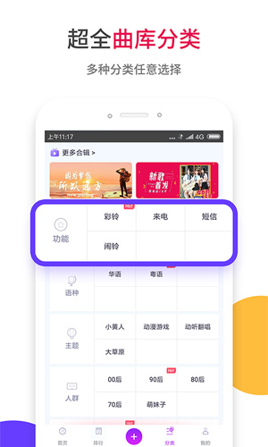1、海量曲库,与时俱进涵盖歌曲、幽默、搞怪等各类铃声统统一网打尽