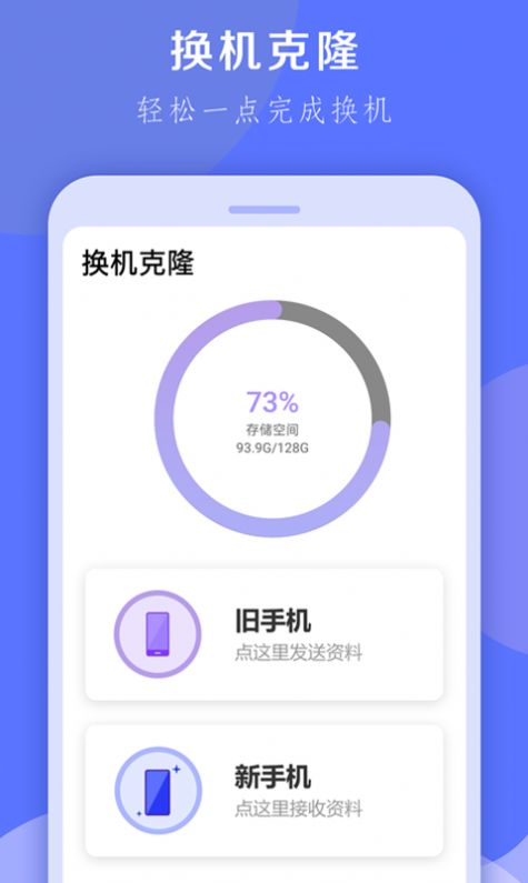 换机克隆大师安卓版是一款手机数据备份软件。换机克隆大师app下载后可以将手机的所有数据备份,等到换新手机时,直接将数据传输,非常的便捷。换机克隆大师支持免流量传输,只需要用新手机扫描旧手机,即可将两个手机链接,数据一键传输。传输速度非常快,安全也有保障,可以放心使用。