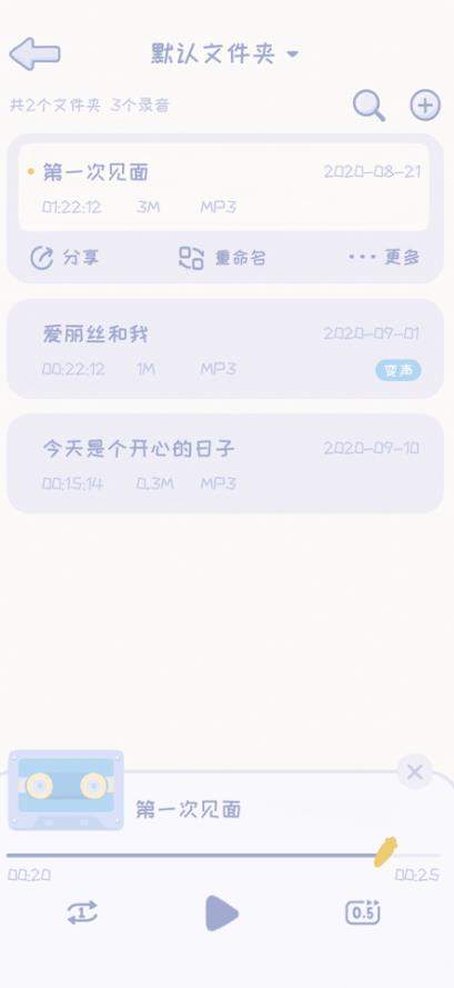 4、页面非常清新可爱,还有一只小兔子陪伴你一起录音