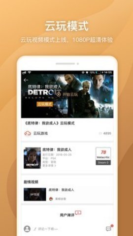 1、云玩游戏app支持在线快速、流畅、1080p高清视频播放。