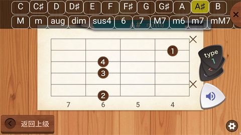 2、和弦图,查看和弦的声音,可以点击或滑动弦来查看声音。
