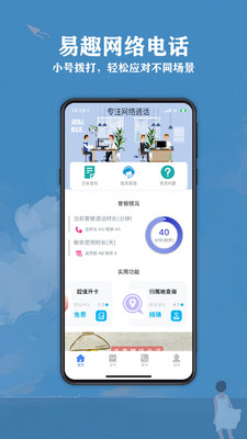 易趣网络电话手机版app为用户提供话费购买,套餐查询,订单查询,拨号等多种功能,您可以在软件主页上一目了然地查看当前手机号码的套餐状态,这是套餐详情显示框,其中包括套餐通话时间和剩余使用时间,易趣网络电话手机版下载之后您还可以查询电话号码的归属,使用此功能,您可以粘贴拨打的号码或接收到的号码参数来查询相应的归属信息,还可以查看查询结果,有需要的用户欢迎来yn下载站下载使用。