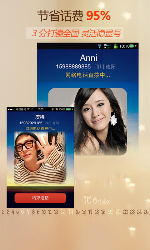3G网络电话—采用全新语音云处理技术,实现语音高清解码输出及实现超低资费,音质媲美传统电话,节省话费90%,3G电话还能灵活显隐号,匿名专线拨打防窃听与追踪保护您的隐私。