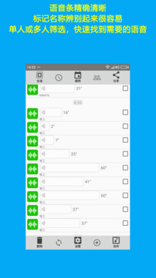 这款软件推荐给大家,欢迎下载使用,可以根据时间过滤记录,以找到用户所需的语音记录,可以播放或共享导出的语音,并且支持多个共享。