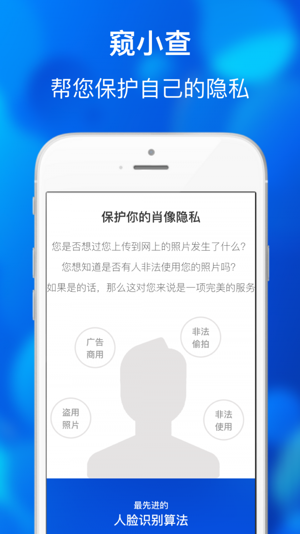 窥小查app是一款非常好用的手机隐私保护软件,该软件具有非常强大的人脸识别和跟踪功能,窥小查下载迅雷下载后可以识别您的脸部,以检查您是否在互联网上有照片,这还可以减少被拍照的可能性,保护您的隐私免遭泄露,并可以识别犯罪分子的脸帮助警察追踪犯罪分子,它具有广泛的用途,借助人脸识别和跟踪技术以及大数据技术,有需要的用户欢迎来yn下载站下载使用。