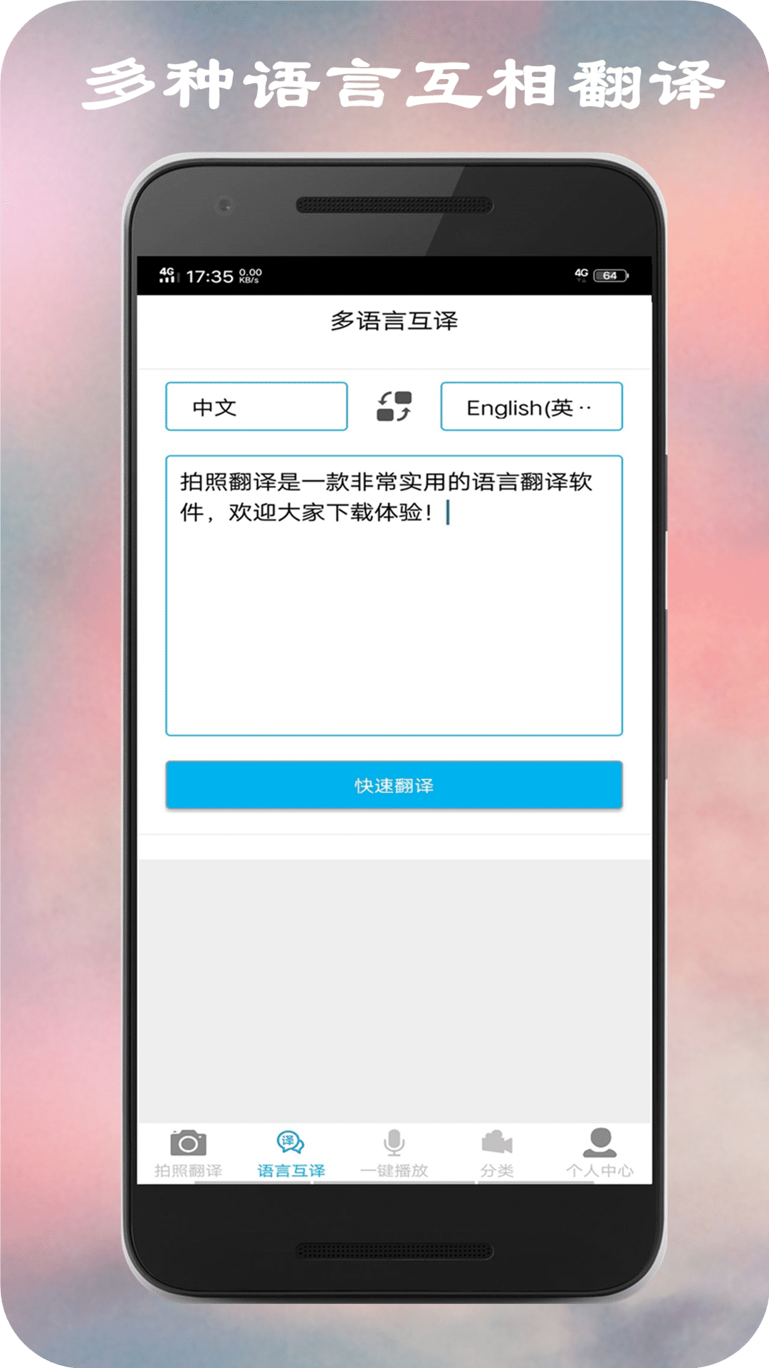 拍照翻译在线app是一款支持多国语言互译的手机翻译软件,使用这款翻译软件,用户可以把英文、日文、韩文等不同国家的语言翻译成中文,免费使用,通过拍照就可以实现语言之间的互译,并且还可以图片转文字,功能多样,yn下载站提供了拍照翻译免费软件下载地址,需要手机翻译软件的朋友,快来下载体验一下吧。